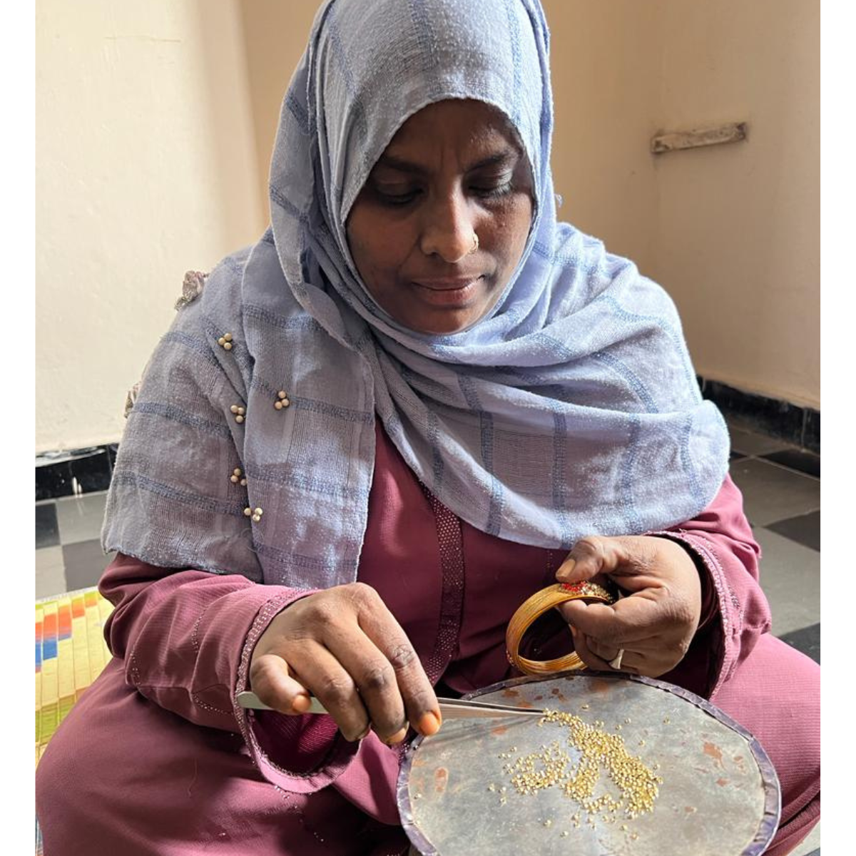 Our journey with these women doesn't just begin and end with creating products . At our dedicated training centres, we help them hone their skills, be it in tailoring or intricate hand embroidery. Beyond these tangible skills, we nurture their spirit, engaging them in discussions ranging from gender roles to mental well-being and from health to their rights. To us, empowerment isn't just a word. It's a continuous journey that leads these women towards making strategic life choices.