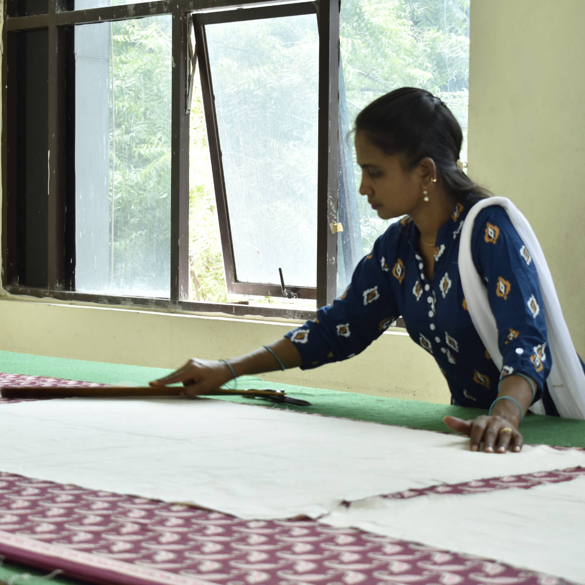 Kritikala brand is owned and led by a team of women artisans guided by Himani, the founder of Kritikala. The production coordination, supervision, cutting of garments, quality checking - all these important roles are done by women who have learnt the skills during their time here. All profits or surplus are distributed back to the artisans in proportion to their effort contributed over the year.